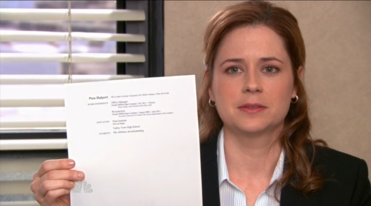 Just because you heard of a friend getting $XXX,XXX salary at a company, doesn’t mean you will. Everyone has something different to offer and jobs these days will offer salaries “commensurate with experience,” or in other words “depending on experience.” The good news is, this helps to level the playing field. The bad news? You’re just out of college so as far as experience goes… Let’s just say your resume looks something like Pam Halpert’s