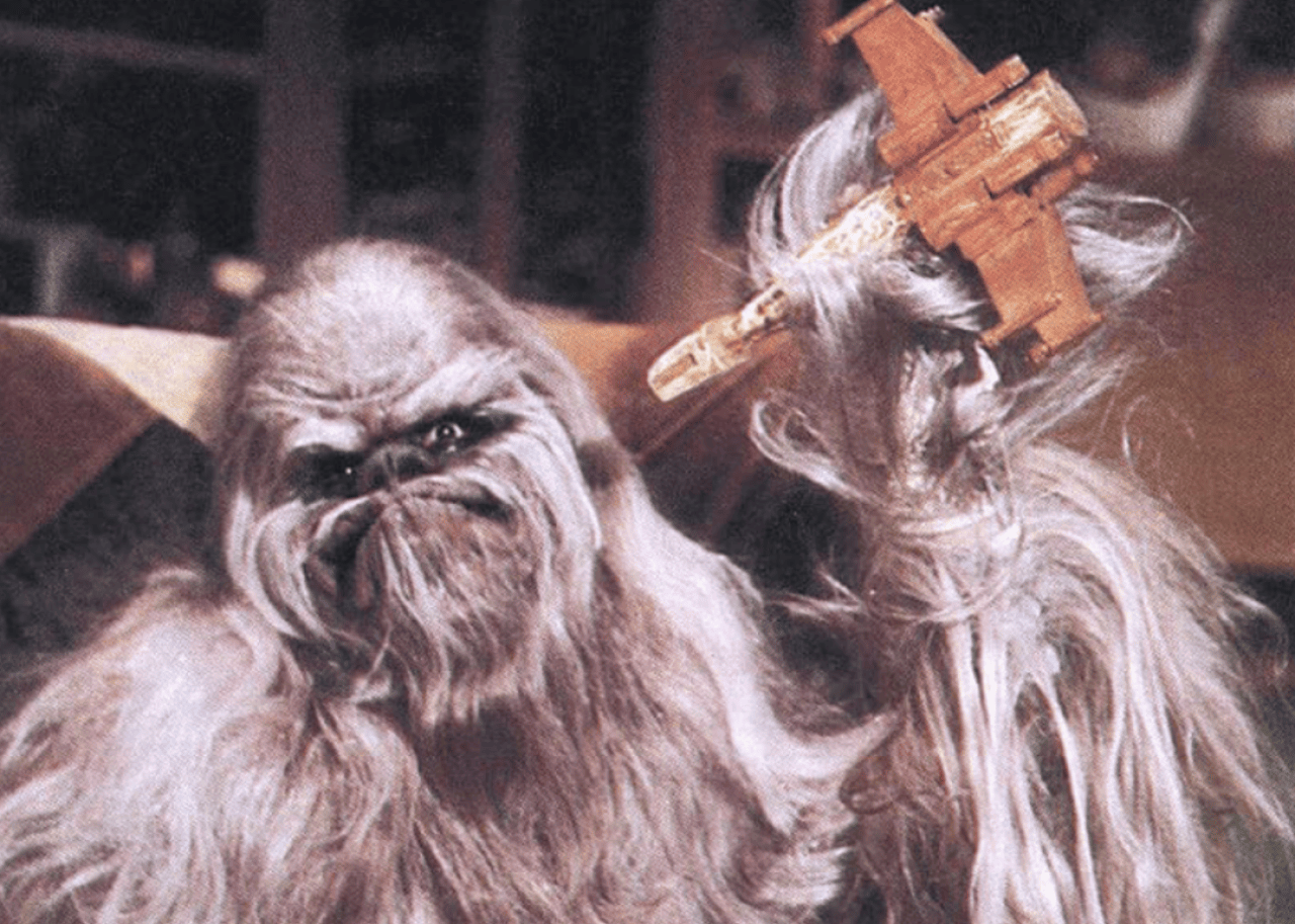 Mayhem on set was second nature—from characters passing out during the cantina scene due to lack of oxygen inside the masks and Mark Hamill having to wear almost comical makeup to disguise scars from his recent car accident to an entire scene in which Chewbacca’s father, Itchy (Paul Gale), watches—on primetime TV the week before Thanksgiving, no less—a holographic adult film.