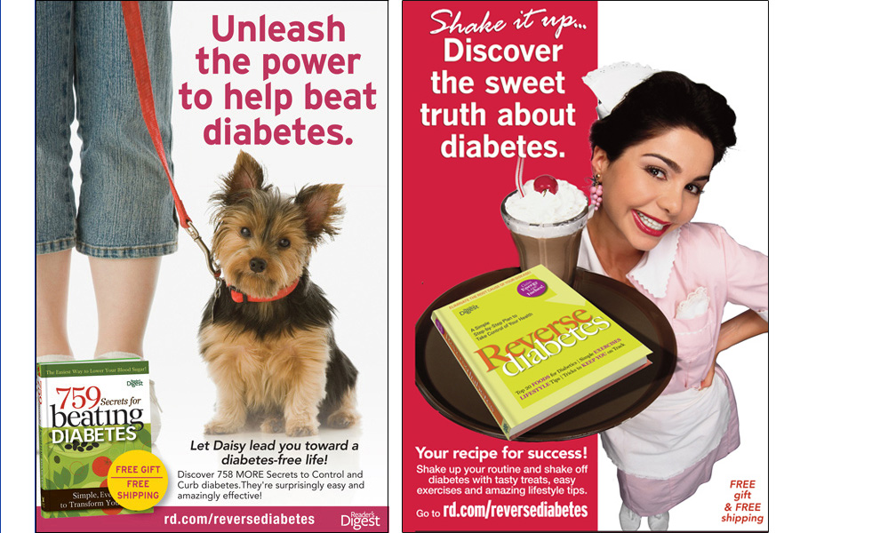 Created print ad to sell the Reader's Digest Diabetes books:. "759 Secrets to Beating Diabetes" and "Reverse Diabetes"