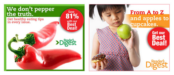 Two Banner ADs promotion g The Reader's Digest Magazine price and Content