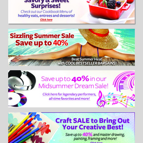 Created one each week for online RD store website. Each week a different discount/product was highlighted by marketing.