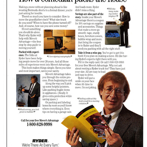 National Ad for Ryder Trucks. responsible for concept, art direction, design, layout, photography using celebrity comedian, Steve Landesburg.
