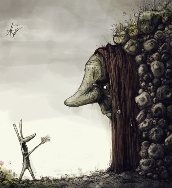 A personal work inspired by John Bauer's depictions of trolls, coupled with my tendency to draw big noses!
