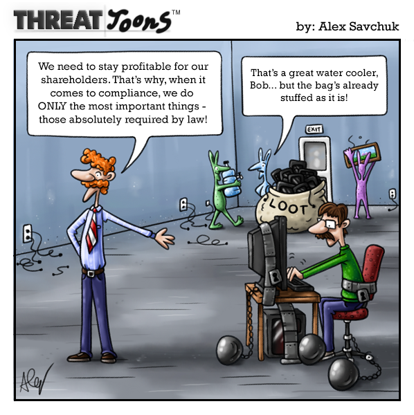 A ThreatToon poking fun at the Sony hack, and the dangers of limiting a company's security to merely complying with industry standards.