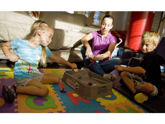 At 4 years old, Brooke Schlutter can count to 10 in Spanish. The dimpled blonde can say "I love you" and recite many colors in Spanish. When her 7-year-old brother, Austin, gets a scrape, she can sing a traditional Mexican song to comfort him. Brooke picked up the language from her au pair.