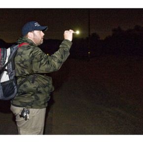 It's a clear October night, just days from a full moon. My heart speeding up a bit, I follow a black SUV into the Santa Ana Mountains with photographer Isaac Arjonilla in my passenger seat. Lights from Lake Forest fade away as we wind our way along Santiago Canyon Road.