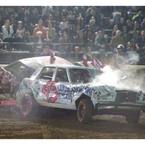 Two flat tires. Steam pouring from the hood. Trunk crunched into the backseat. Still the women kept going, taking aim and smashing into each other until one car was left standing.