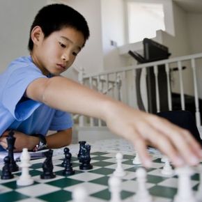 He can't resist for long. Mid-conversation, amid halting talk of swim lessons and math class, Brandon Xia reaches for the white and black pieces arranged on the table in front of him.