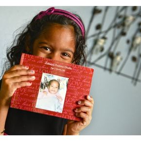 Pages are starting to tug from the binding of the little red book. Zaleeya Pratima Dhalla turns them slowly, narrating photos that document her life at Calcutta Children's Home. "That's me," the 5-year-old says, pointing at a smiling infant dressed in pink and nestled in blankets.