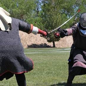 Confused children, dusty and tired from a Saturday morning of Little League, drifted away from the ball fields at Eva Dell Park. They were drawn by flashes of sunlight bouncing off suits of armor and the clash of swords cutting through the spring air.