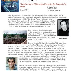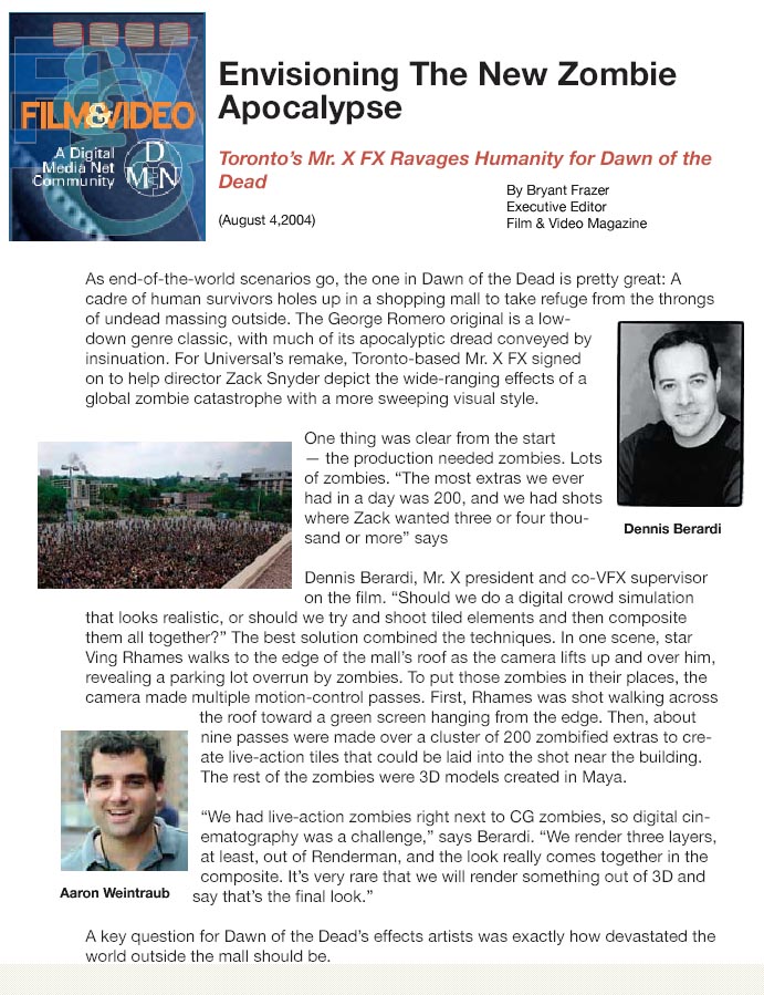 Mr. X received raves for its work 'imagining the new zombie apocalypse,' and here discusses its work for the high-profile Dawn of the Dead remake in Film & Video -- a direct result of our story pitch.