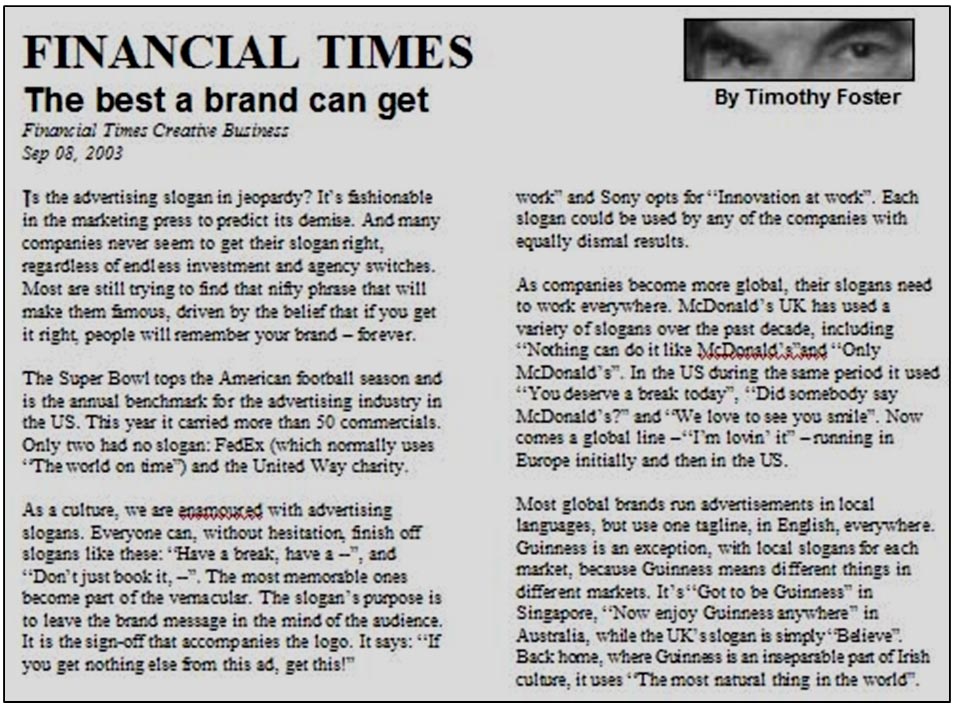 (AdSlogans in the Financial Times 9/8/2003)