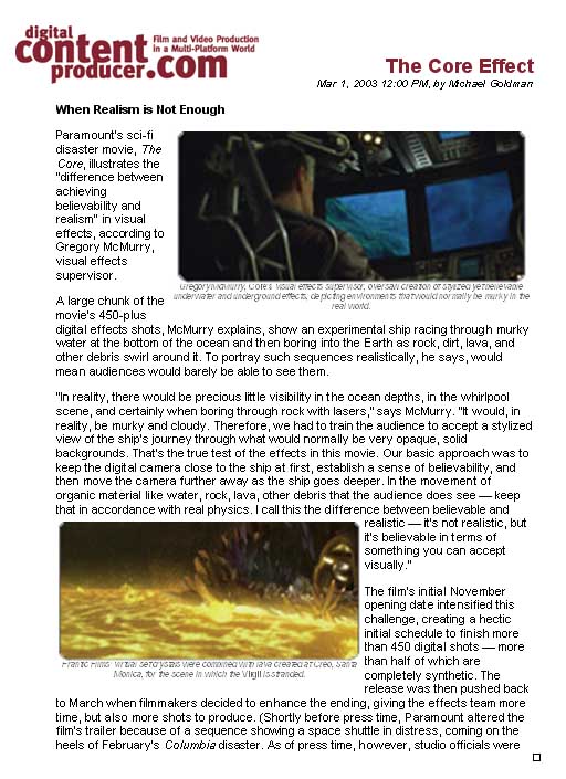 Another sample production/post success, for effects studio Frantic Films, with a major feature on their beautiful work for the motion picture, The Core.