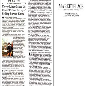 A terrific example of PR visibility for ongoing client Timothy R. V. Foster and AdSlogans, in this terrific piece in the Wall Street Journal spotlighting the slogan expert's unique industry niche.