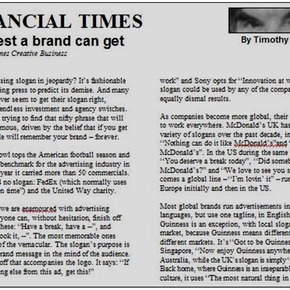 Another sample success for client AdSlogans in a full-length feature for the distinguished Financial Times.