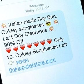 "Italian made Ray Bay, Oakley sunglasses :)" reads the Emoji-riddled iMessage sitting in your iPhone's Messages inbox. "Pick up Your New RayBan Sunglasses Here before they run out!"