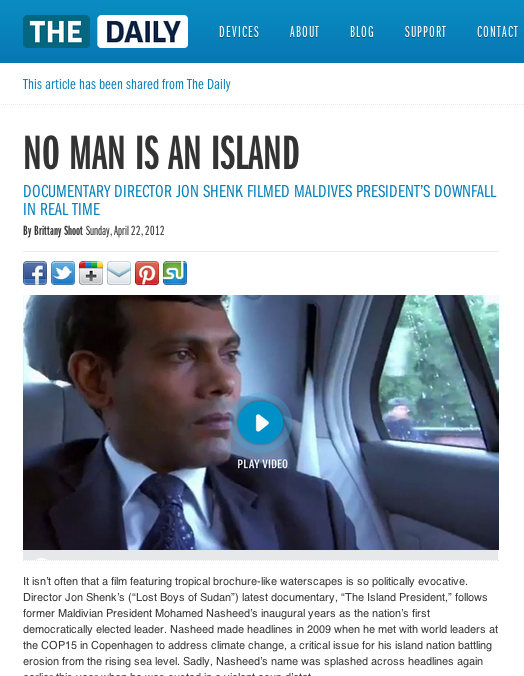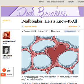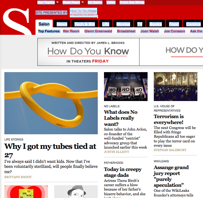 The Daily (10+), The Washington Post's WhoRunsGov (10+), xoJane.com (10+), AlterNet (6-10), Bitch (6-10), Herizons (6-10), Sojourners (6-10), Spirituality and Health (3-5), The Atlantic Cities (3-5), Mediabistro.com (3-5), Mental Floss (3-5), Diversity Woman (3-5), Geez (3-5), GOOD (3-5), Hemispheres (3-5), USA Today (3-5), TIME (1-2), The Rotarian (1-2), ISLANDS (1-2), Happen Mag (1-2), Ms. (1-2), Salon.com (1-2), Selamta (1-2), The Awl (1-2)