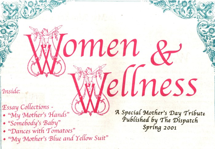 Narrative essay (creation nonfiction), by Colleen Sell, published in the "Women and Wellness" insert of a regional newspaper (Tacoma, Washington)
