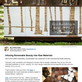 This is a 200-word profile I penned about the stunningly beautiful interior design materials created by eco-focused raw materials manufacturer, Kirei USA. This feature was written as an email blast to 80,000 recipients and currently lives as content on Dezignwall's social media.