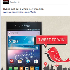 This Facebook post on the Verizon Insider Facebook page touts the new LG Galaxy Note.