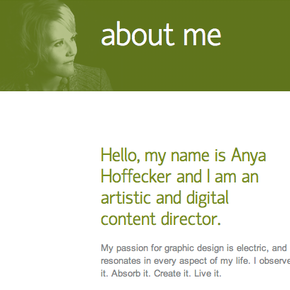 Creating this descriptive bio for Omaha-based graphic designer and artistic director Anya Hoffecker was a fun challenge. I had to get to know my client well enough in a short amount of time to be able to express in precise, descriptive language who she is and what she has to offer.