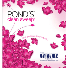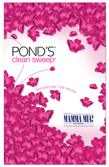 I worked with my team to develop a direct mailer that doubled as a Beauty Advisor POP display, including coupons, samples, a beauty advisor letter, and security shroud. We leveraged the Pond's national look and feel and worked in the Mamma Mia! partnership. The client chose my look.
