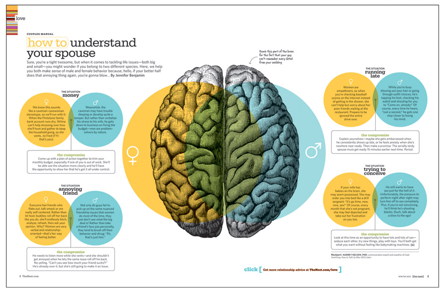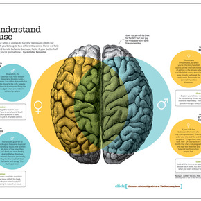 Using Venn Diagrams over a brain to illustrate the male and female meeting of the minds.