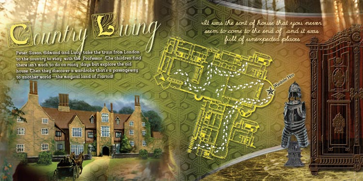 Spread for the book "Step Into Narnia: A Journey Through The Lion, The Witch, and The Wardrobe"