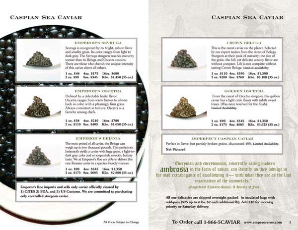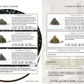 I conceptualized, designed, art directed the photo shoot and created background digital illustrations using old etchings of russian and caviar related imagery for this 8 page catalog.
