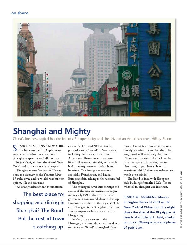 Well-rounded, internationally published writer/photographer with a flair for capturing the essence of a person or place. Specialties include travel and health, though I love new challenges. Article topics have included cruises in China and Alaska, a bicycle tour in NYC, arthritis, and Enron trial's litigation support personnel (cover story). My photographic style veers toward candid portraiture, especially when I'm traveling. Travel expertise: US, Asia, South America, Antarctica, adventure, family travel.