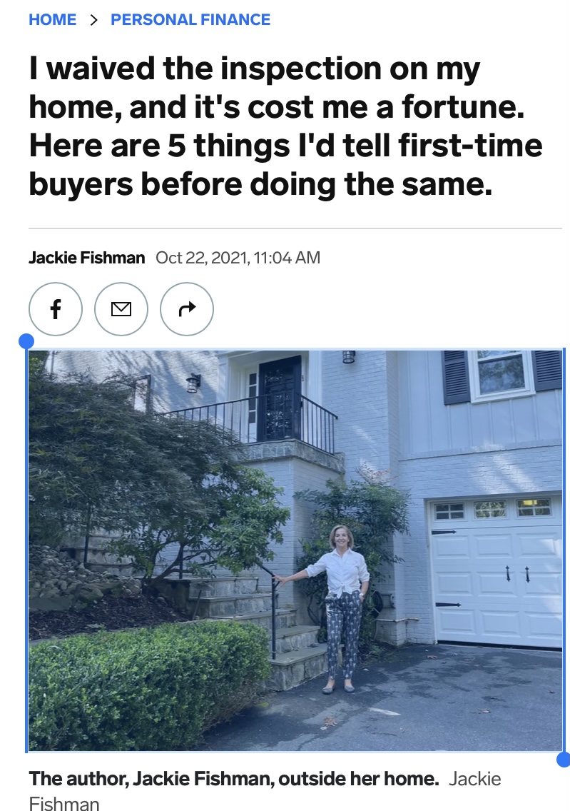 Essay for Personal Finance on the perils of purchasing a home in the 2021 housing market, focusing on waiving my right to a home inspection.
