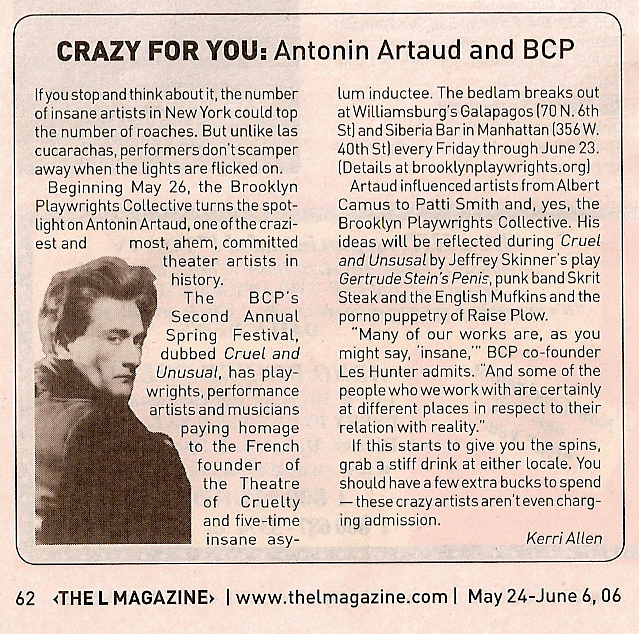 American Theatre magazine (3-5), Trump's Poker Life (1-2), Time Out New York (10+), Back Stage (10+), Metro New York (1-2), The L Magazine (1-2), Latino Leaders magazine (10+), Hispanic Outlook magazine (10+), The New York Times (6-10), Nummer (Sweden) (3-5), Diverse Issues in Higher Education (3-5), Alternative Medicine (1-2)