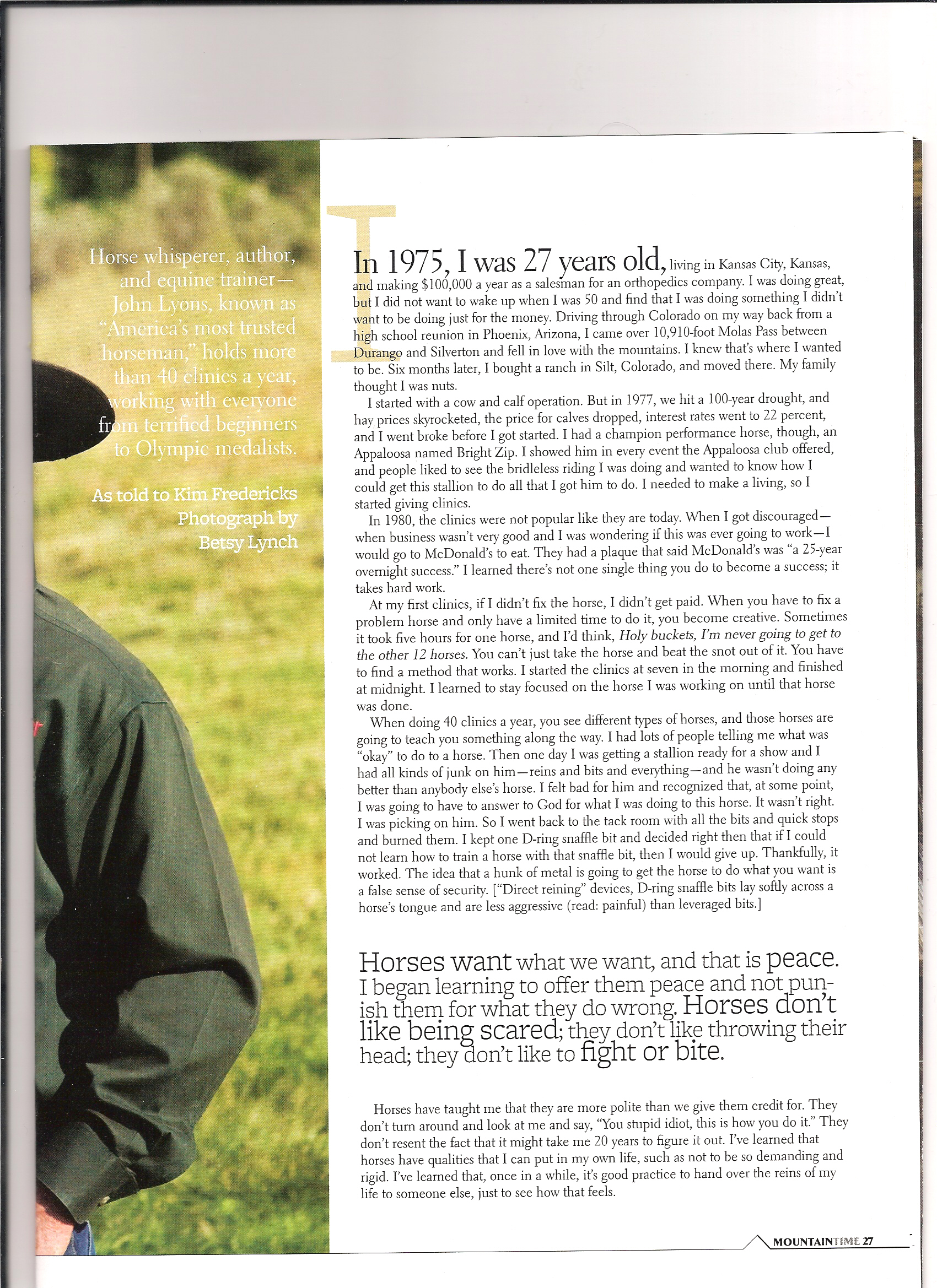 Profile of horse whisperer John Lyons.