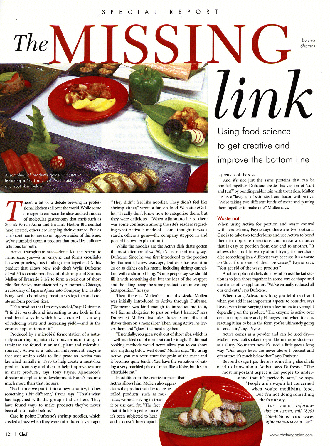 Specializing in food writing, including chefs and restaurants, I've covered topics ranging from a three-day food expo in Spain (Madrid Fusion) and how chefs are storing their cheese to a new ingredient that 'glues' proteins together. In addition, I've been covering the local dining and culture scene in Chicago for the last 10 years for two monthly regional magazines (CS and Men's Book Chicago), which includes articles on new restaurants, restaurant reviews, cultural events and shopping. With writing experience that includes consumer, trade and custom-published magazines as well as extensive experience on the Web, I understand the importance of writing for a specific audience. Beyond food, I've also written articles about entertainment, travel, culture, design and weddings.