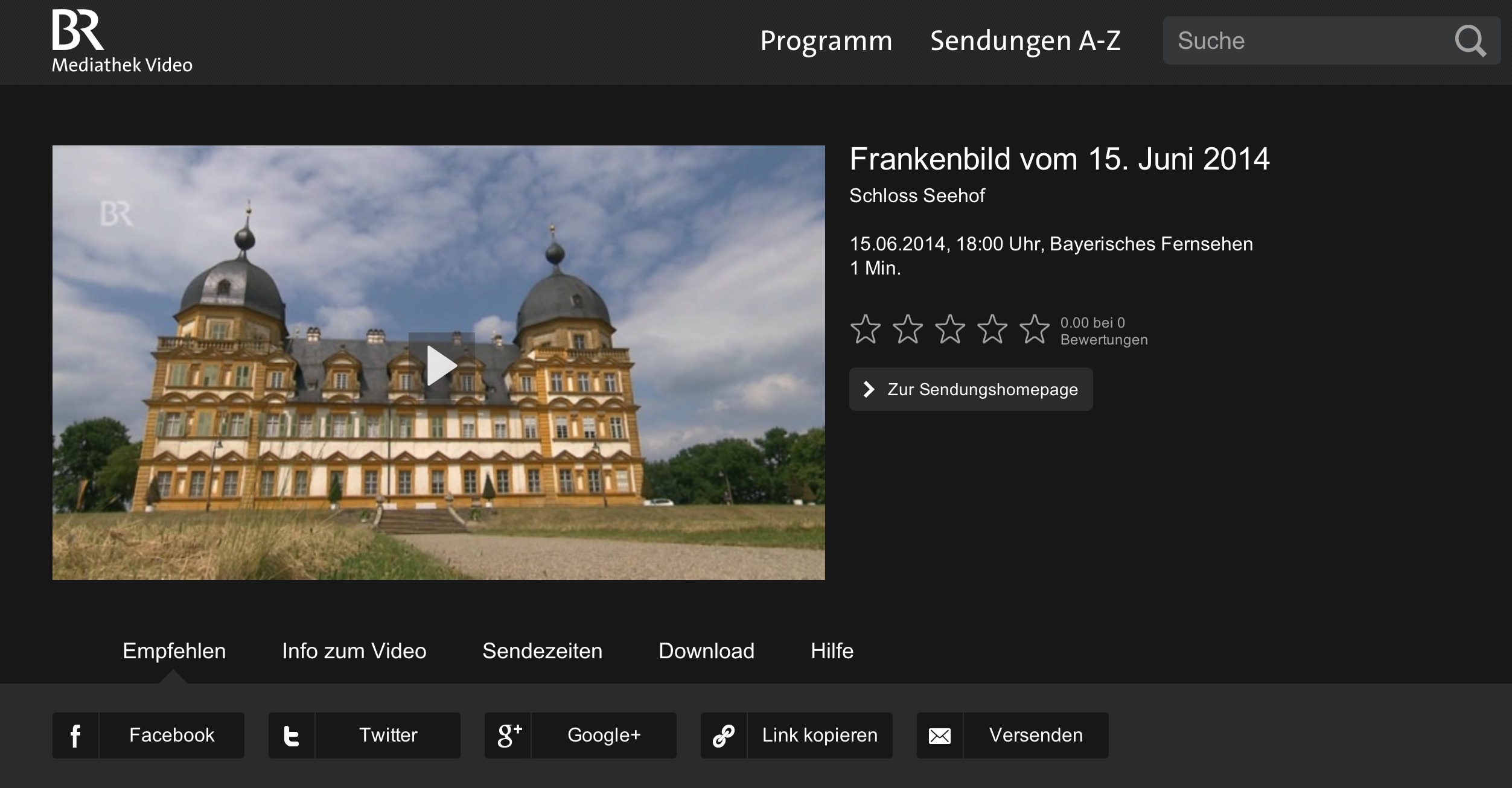 "Schloss Seehof bei Bamberg - Verwendete Musik: Variationen zu einem Thema aus der "Violinromanze Nr. 2 in F-Dur" von Ludwig van Beethoven."
