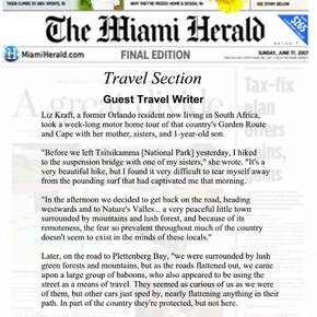 ...Read more about her adventures in South Africa online at www.miamiherald.com/travel. Click on "Guest Travel Writer" and "TravelingMom".