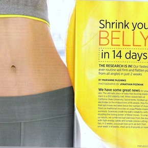 Feature article: Drop up to 14 pounds and trim an average of 9 inches off your belly without reader-tested, rapid-results plan. Opening spread scanned, full article available upon request.