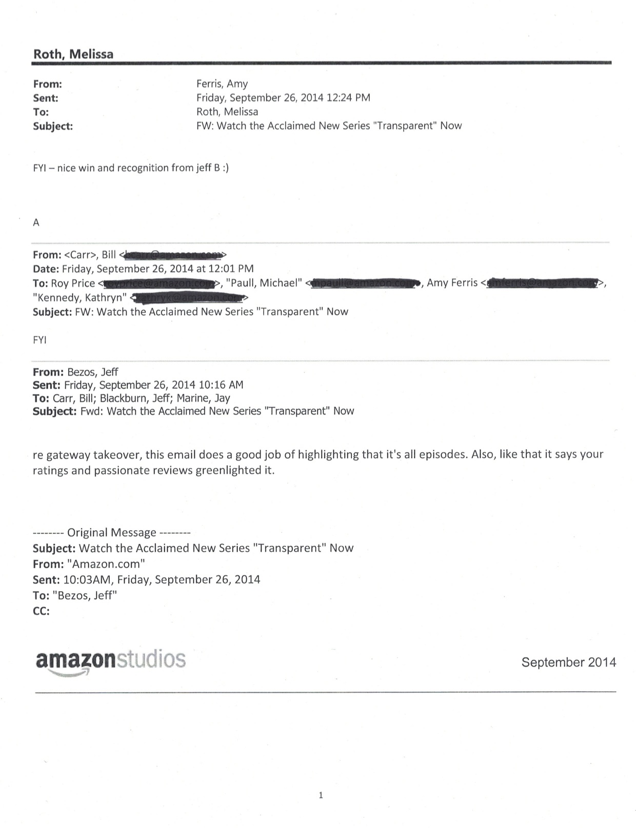 High praise from the head of Amazon for my launch email messaging unveiling "Transparent" to Amazon audiences.