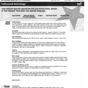 Wrote story extensions for Entourage including "Ari's Guide to Closing the Deal" and "Entourage Guide to Hollywood Lexicology," which deciphered the secret code of Ari Speak: