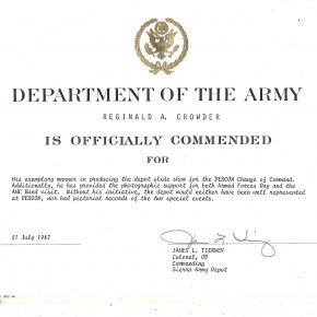 Certificate of Commendation issued by JAMES L. TIERNEY, Colonel, OD, Commanding, Sierra Army Depot, Herlong, CA 96113