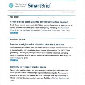 REG CROWDER: Frequent contributor, "CFA Society News York SmartBrief, an e-newsletter published by SmartBrief in partnership with the CFA Society New York