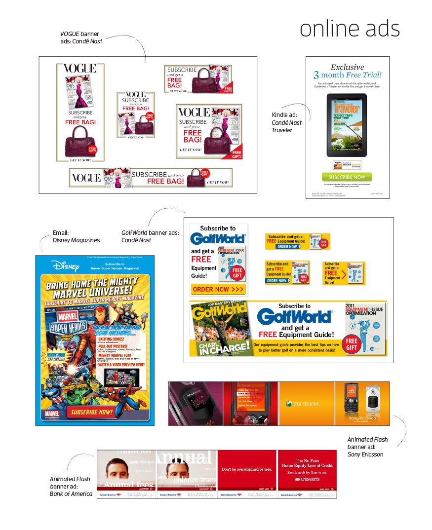 Disney Magazines (6-10), Consumer Reports (3-5), Conde Nast (6-10)