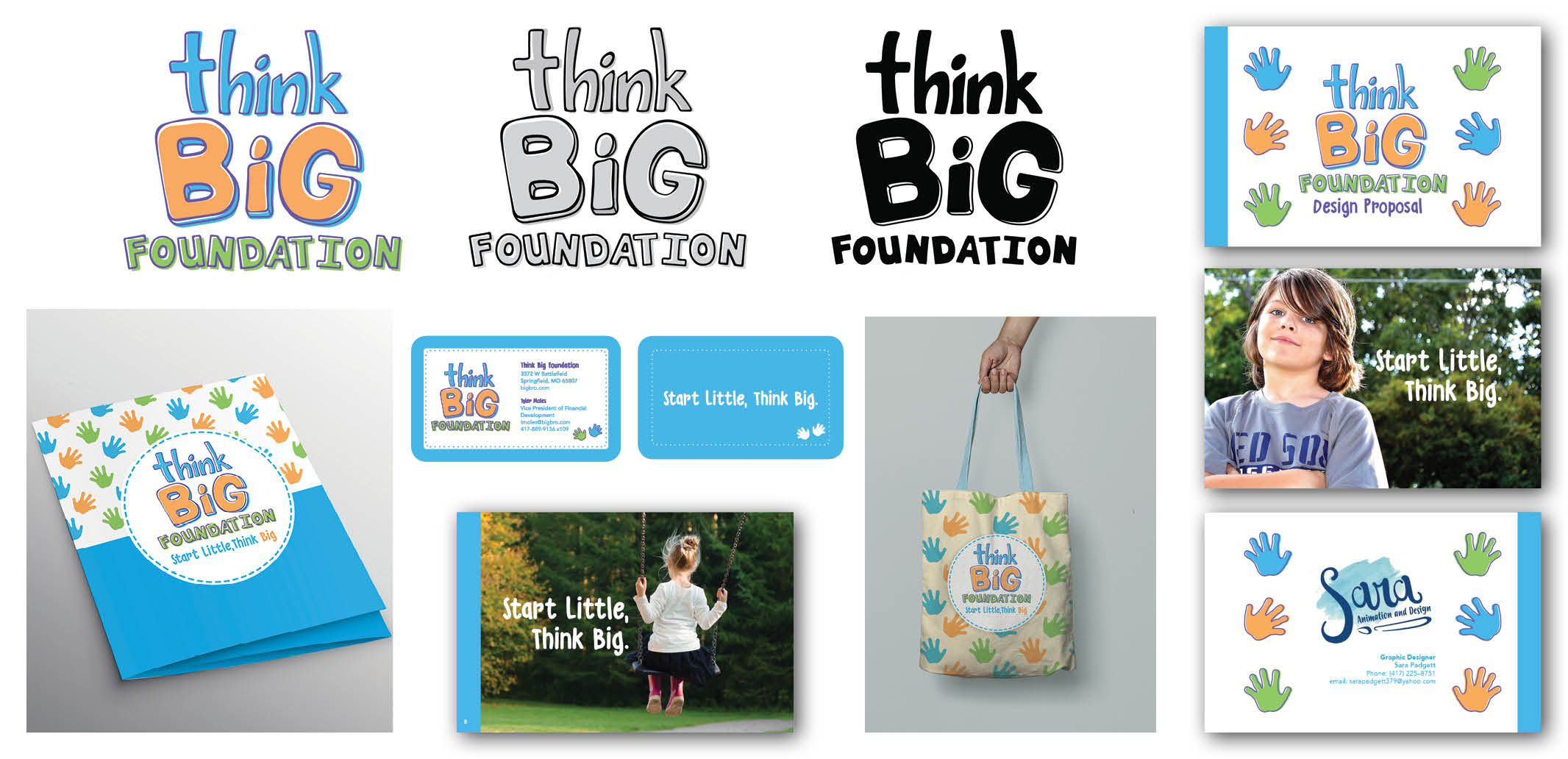 The purpose of this project was to create a new brand identity for the Think Big Foundation, a new local non-profit that serves the ozarks by providing children with quality, gently used clothing. This included creating an orignal logo, folder, business cards, packaging, and a style guide (a sample of which has been included).