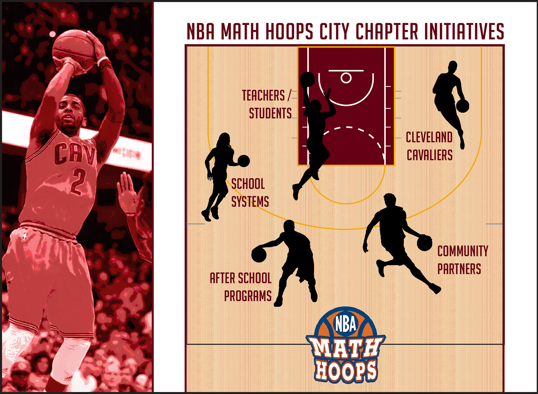 NBA Math Hoops is a non-profit organization (partnered with the NBA) that uses basketball as a way to help kids love and learn math. They asked me to create an infographic that summarized the group's public positioning in an NBA city/community -- in this case, Cleveland.