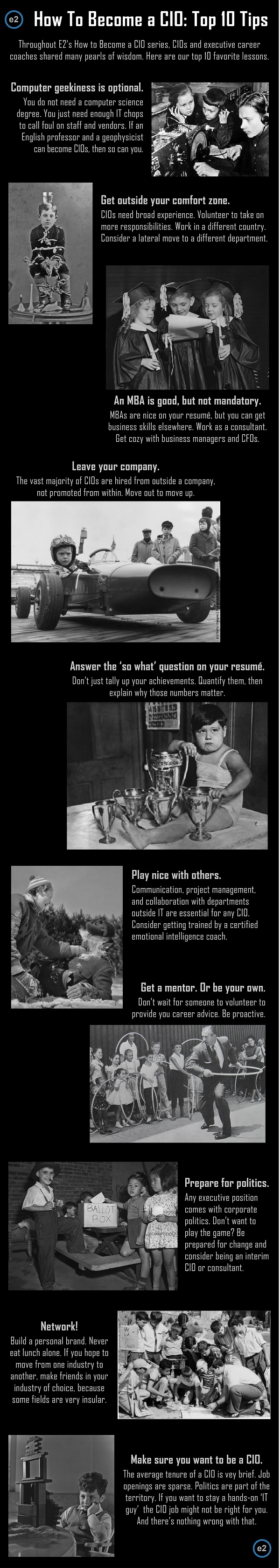 Part 1: This blog and slideshow introduced a 10-part series about how to land the CIO job, and established the visual style I'd use for the entire series. Vintage B/W photos of children captured the timeless "what do I want to be when I grow up" question, with some charm and humor.