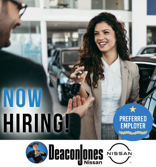 At Deacon Jones Nissan sales are booming, and we are hiring now for Sales Consultants to keep up with consumer demand for new and used vehicles! Do you want to start a career where your efforts are appreciated and rewarded? We train the right candidates for the exciting field of auto sales!