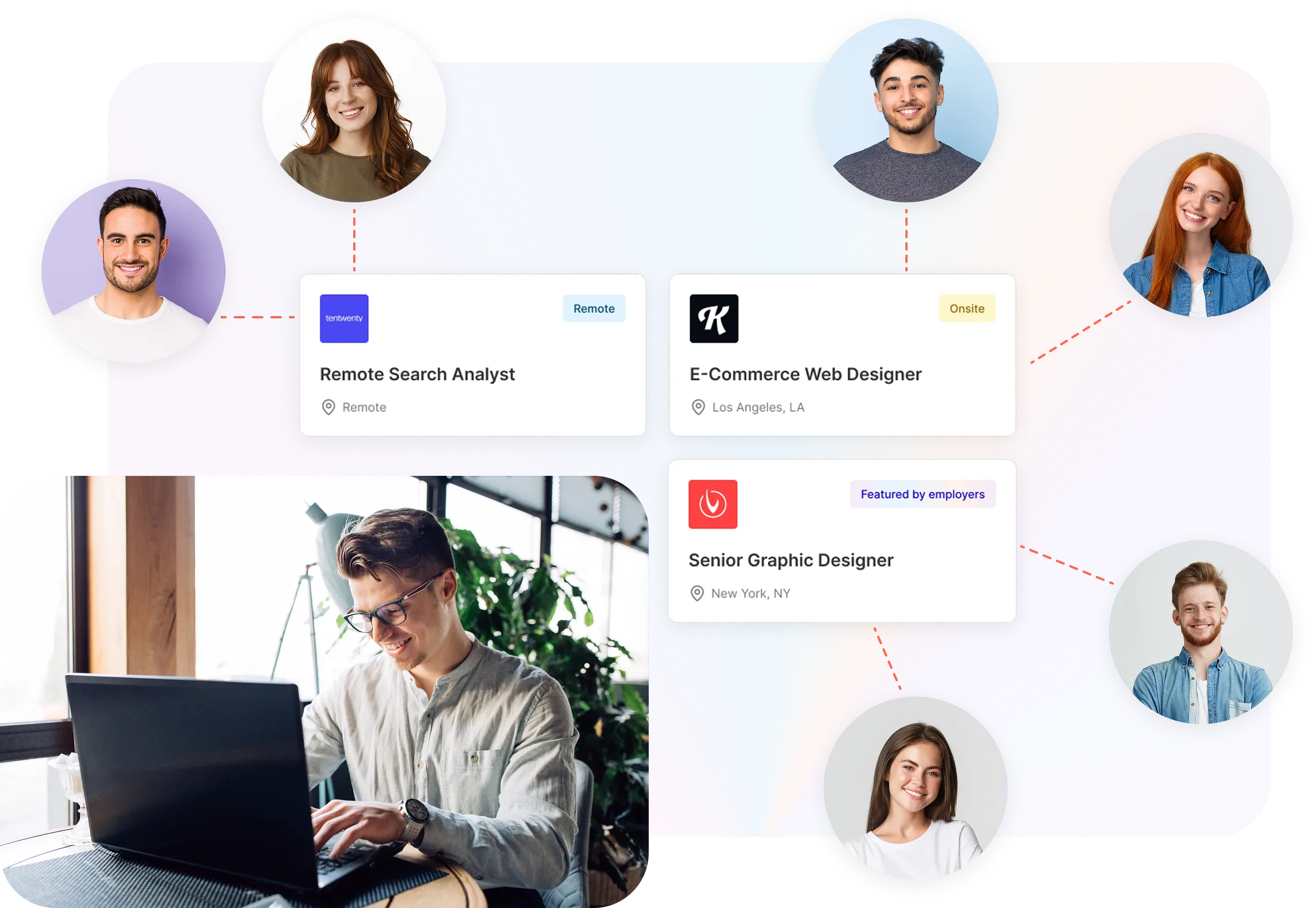 Job seekers and featured job cards collage